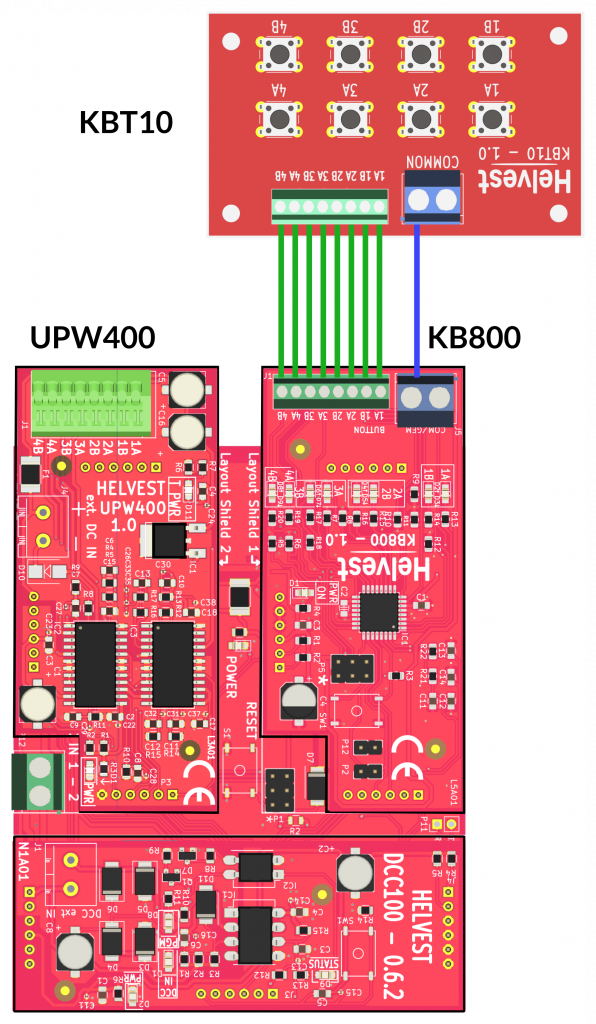 KBT10 funktioniert ebenso gut im Analogbetrieb, um Ihre Weichen, Signale oder andere durch Taster steuerbare Zubehörteile zu schalten, ebenso wie die Helvest-Relaiskarten, die speziell für analoge Anlagen entwickelt wurden.