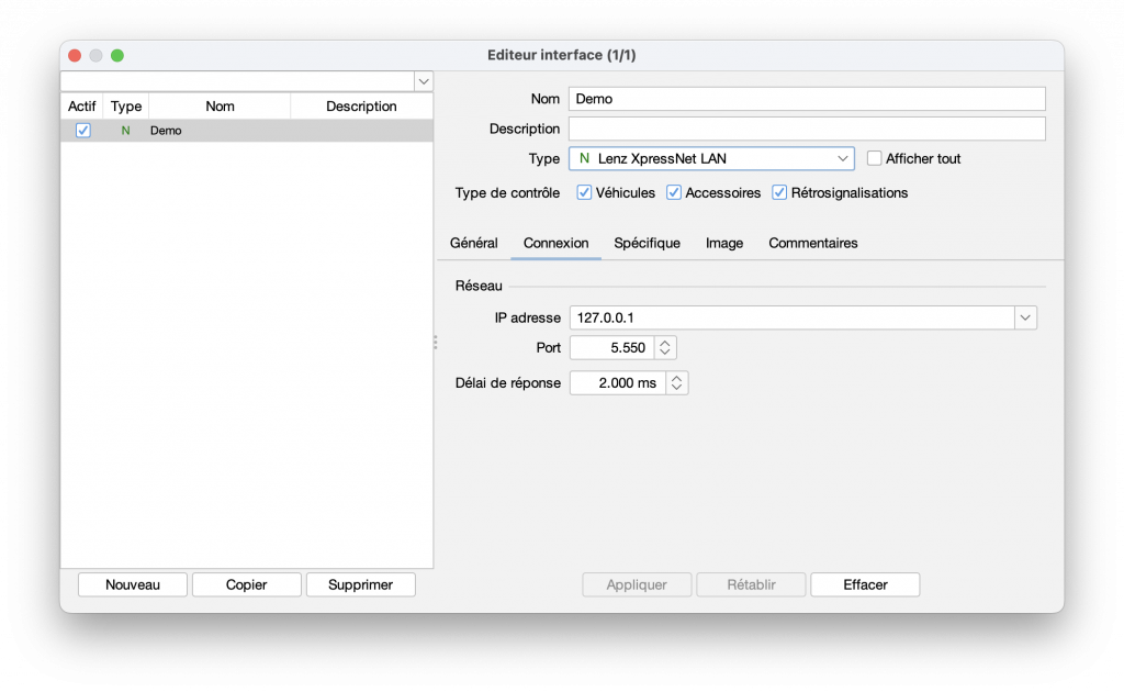 In the window that opens, set the interface type to Lenz XpressNet LAN.